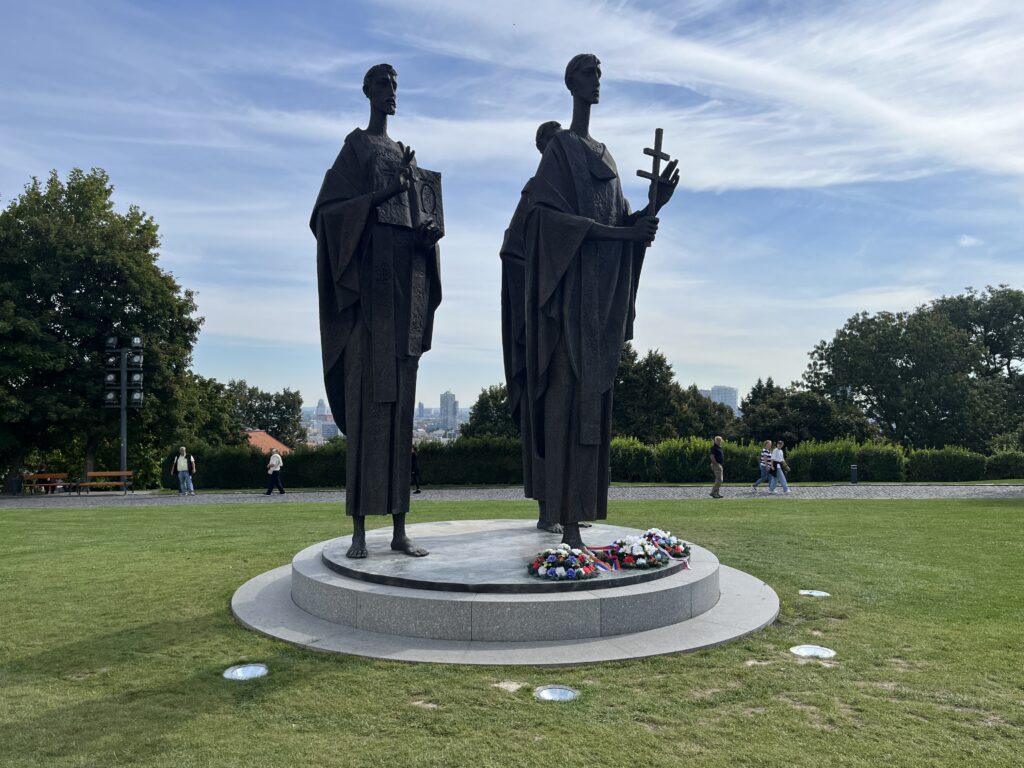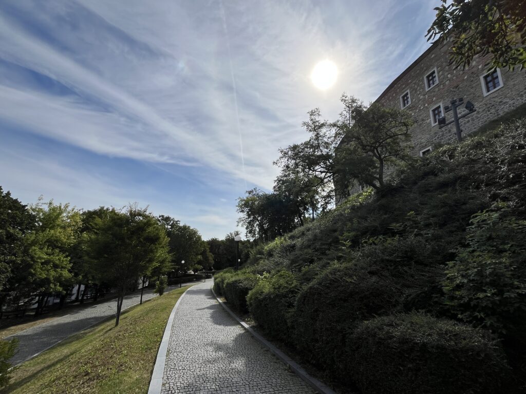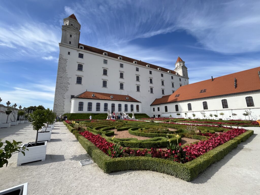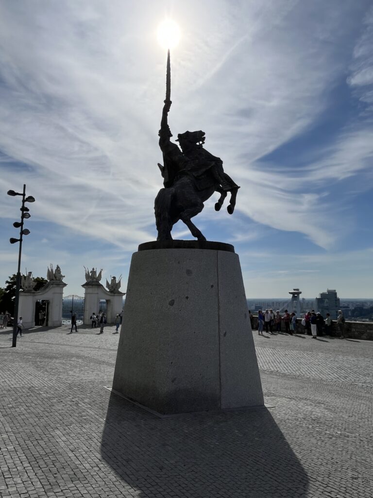 At 7:15 I woke up, stayed still a bit in the bed and then ate breakfast in the hotel. The buffet was great. After check-out, I went to a fountain (Námestie slobody) and then visited the castle. At 10 o‘clock, I reached the EuroVelo 6 route, which I will follow to the Black Sea.