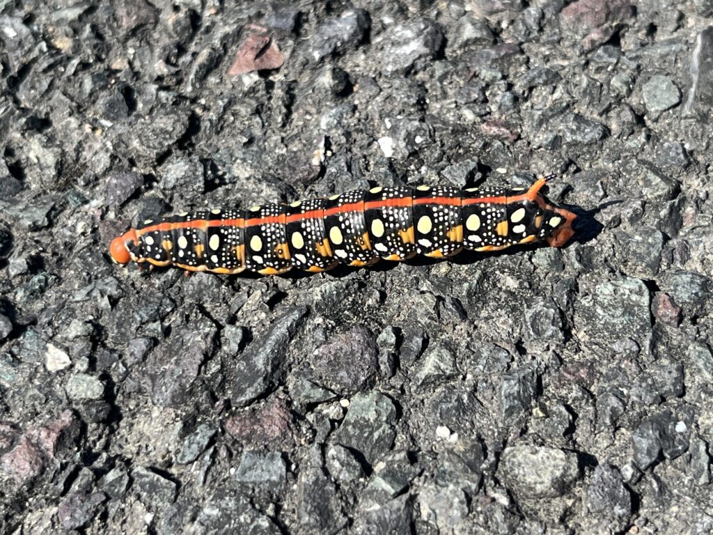 The next almost 100km were on a dam. The nature, especially after about 20km was amazing. So many birds were on the river and enjoyed the silence. And then a highlight: an incredibly beautiful colored caterpillar crossed the road. I immediately stopped, went some meters back and took some pictures. That will be something for the entomology association of Bern, where I‘m member 🙂 .